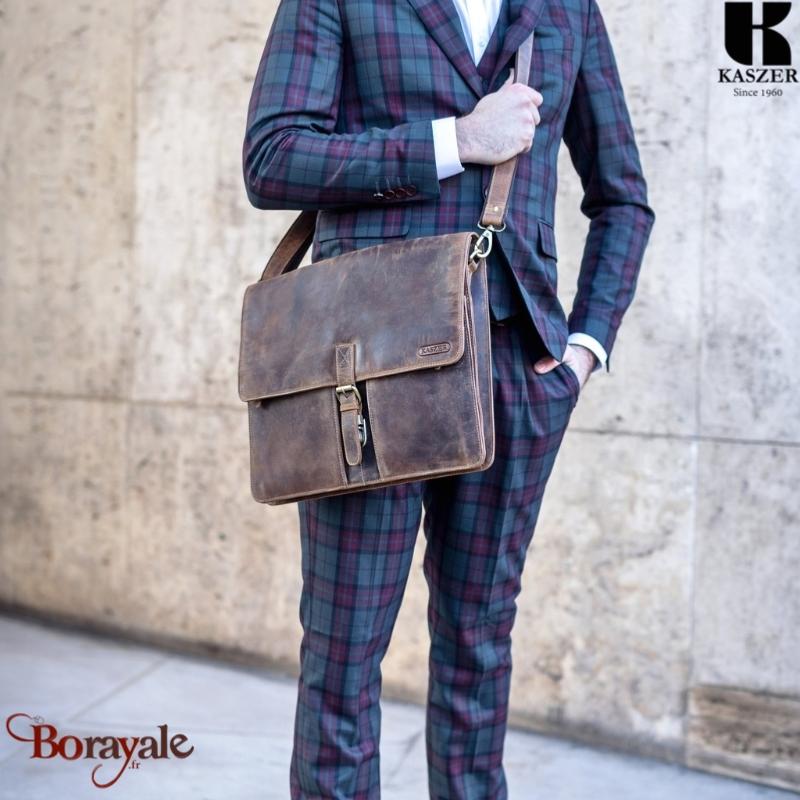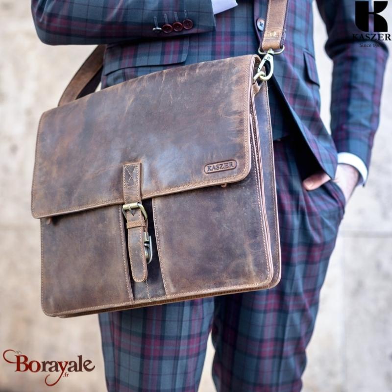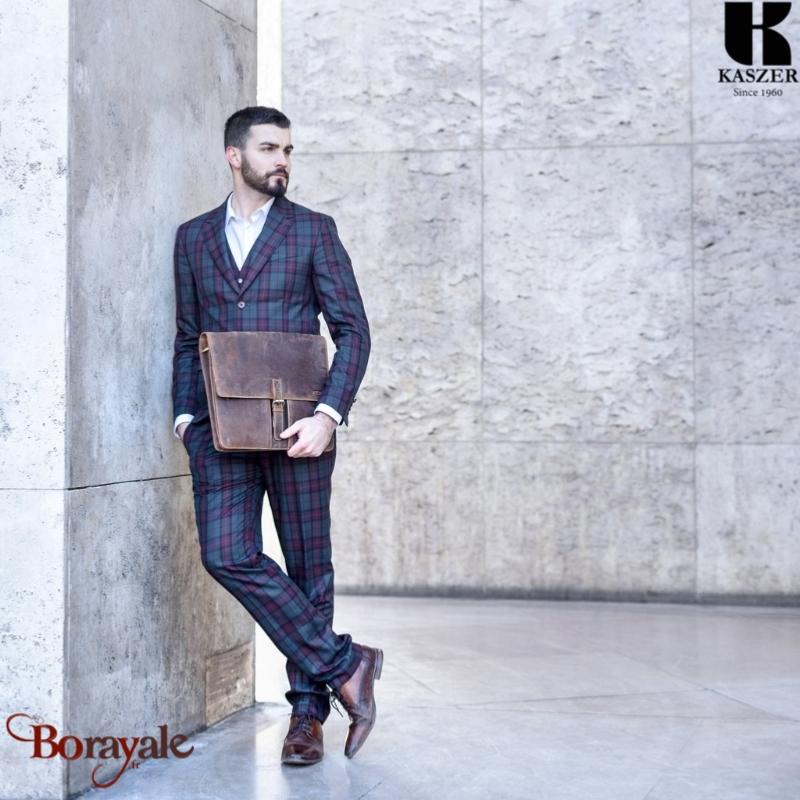 Cartable Serviette KASZER collection Nevada Marron naturel clair touché velours