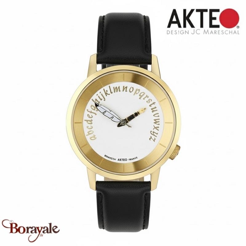 Montre AKTEO Art - Lettres Ecrivain 38 mm dorée ronde ALe15
