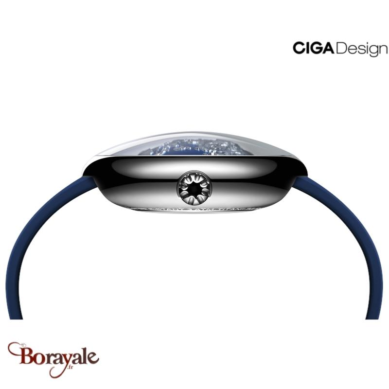 Mecanisme : La montre est animée par un mouvement automatique (à remontage automatique) développé en interne par Ciga Design. Ce calibre bat à 21 600 vibrations par heure (3 Hz) et offre une réserve de marche d'environ 40 heures.