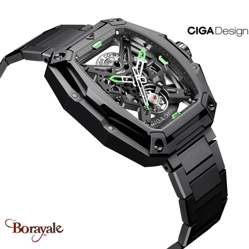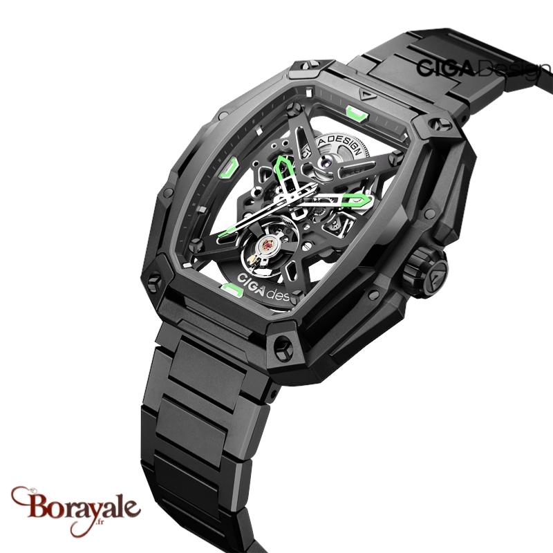 la Ciga Design City Hunter Black est une montre qui allie l'esthétique d'une montre de luxe sportive à la complexité fascinante d'un mouvement squelette. Son look intégralement noir et ses finitions soignées en font une pièce forte et moderne, idéale pour celui qui recherche une montre statement mécanique et abordable.