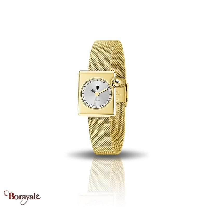 Fermeture du bracelet : Bracelet: milanais doré. Entre corne: 14 mm, Toutes les montres LIP sont fabriquées en acier inoxydable 316L, l’un des aciers les plus nobles et les plus chers du monde. L’acier 316L est hypoallergénique, amagnétique, très résistant à la corrosion et quasiment indéformable. L’utilisation de ce matériau haut de gamme nous garantit la grande fiabilité des boîtiers et bracelets métalliques.