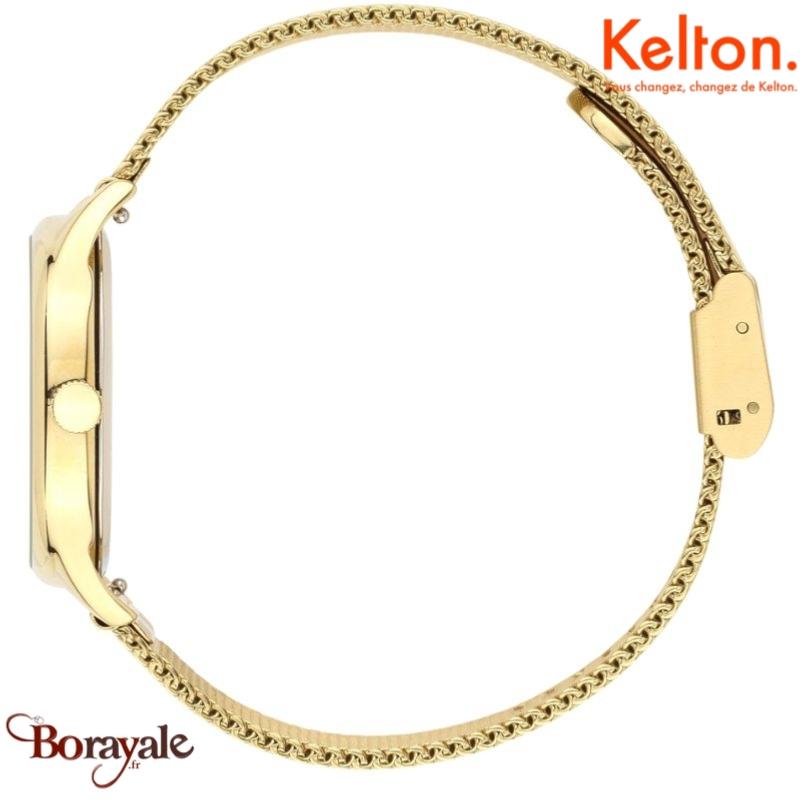Montre Kelton, conçue et assemblée en France, Colorama mesh Or pour Femme mouvement
