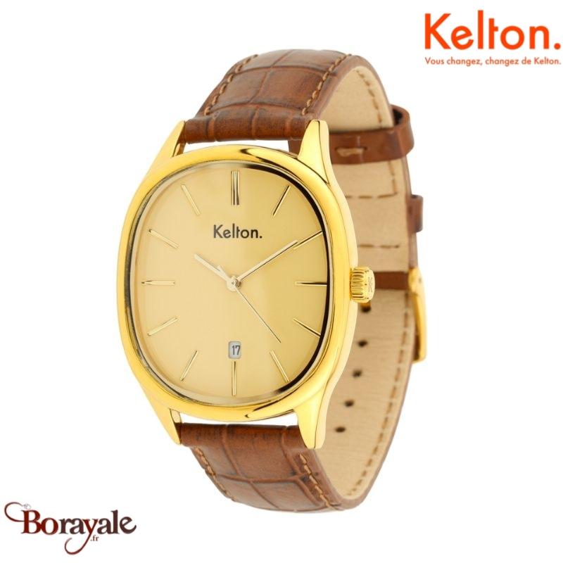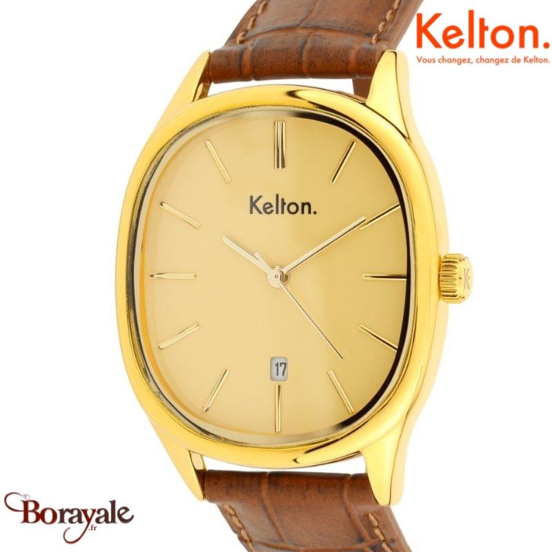 Montre Kelton, conçue et assemblée en France, Grande Colorama or pour Homme mouvement quartz