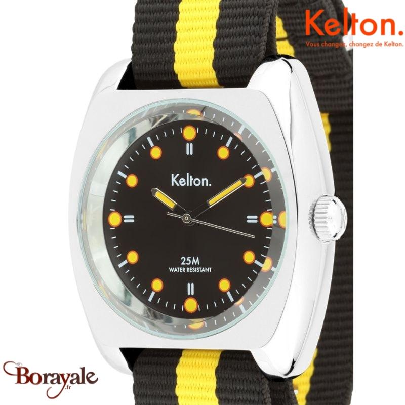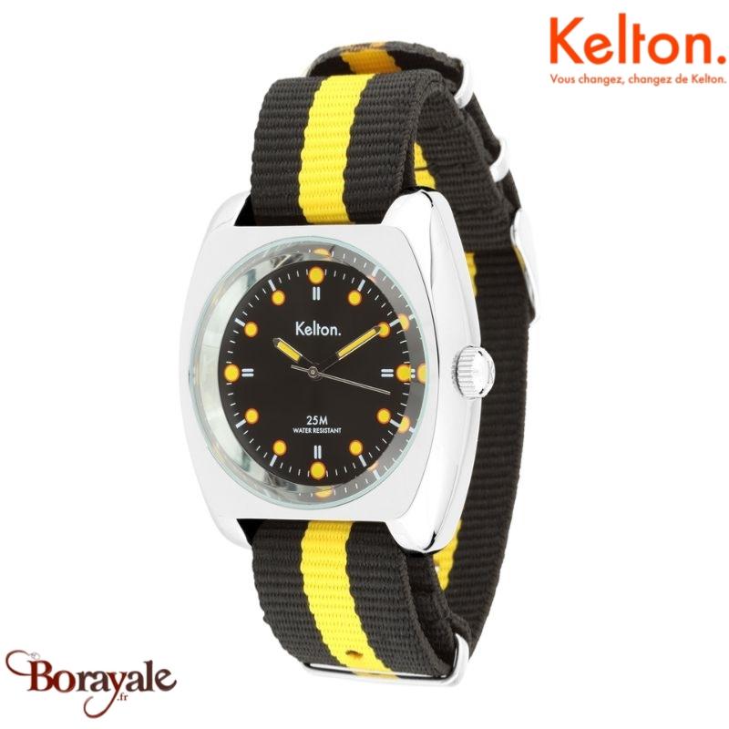 Montre Kelton, conçue et assemblée en France, RC 22 noire- jaune nato pour Unisexe mouvement quartz