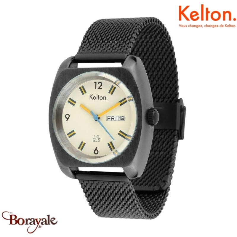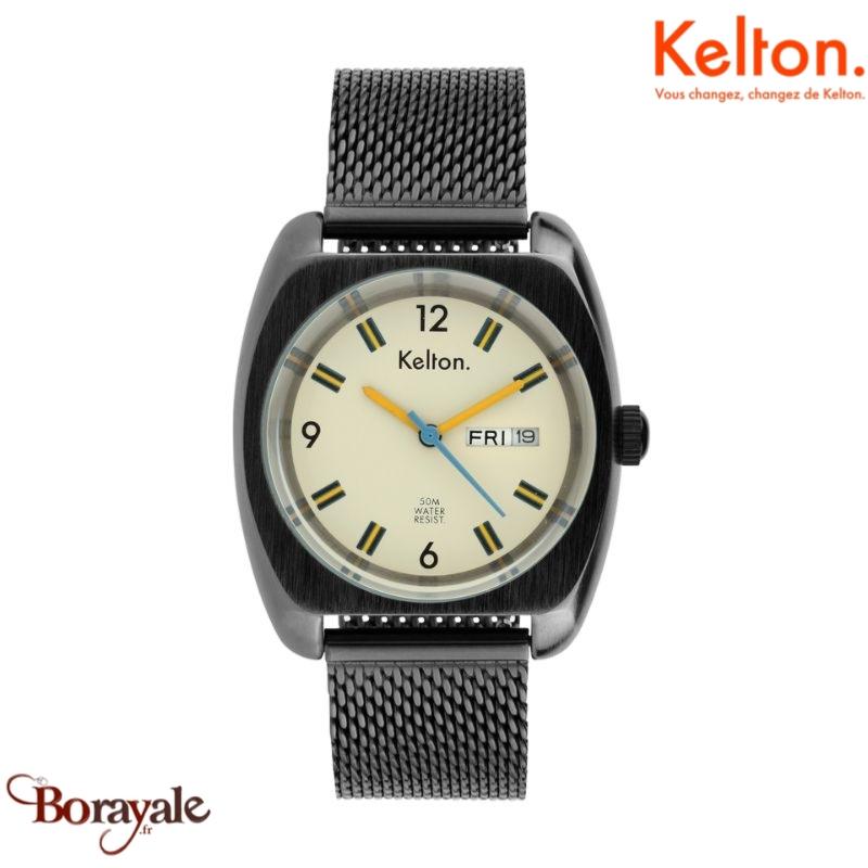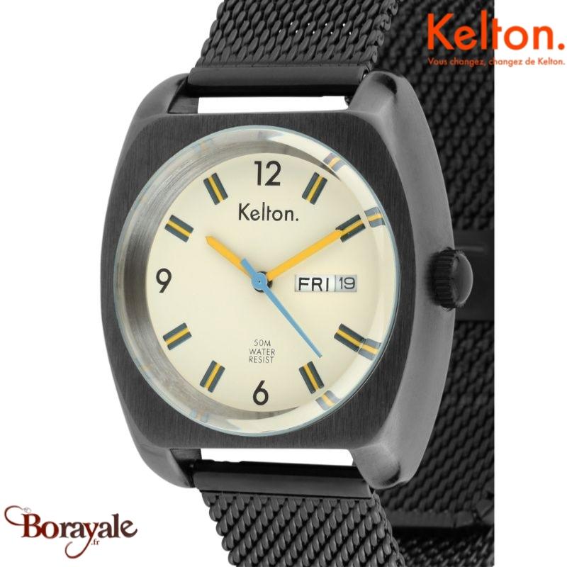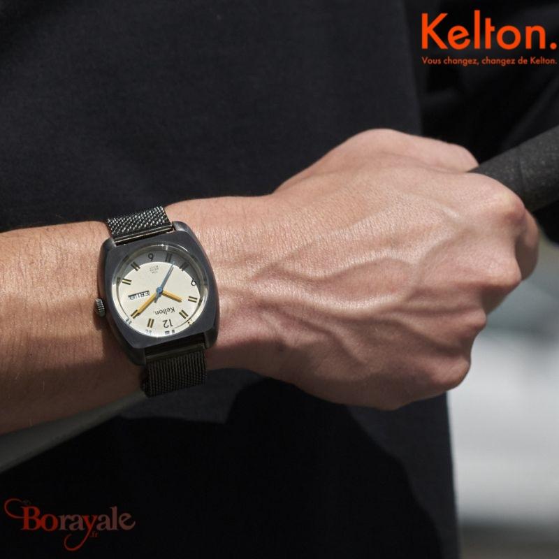 3. #Histoire de la marque#Kelton est née en 1955, entre les États unis et la France sous l’impulsion de Stéphane Boullier, fabricant de montres à Besançon, qui se verra confier une partie de la production du géant américain Timex à condition de créer parallèlement une marque française : Kelton. C’est en 2016 que Kelton amorce son grand retour sur le marché français. Le groupe As Conseil qui a repris la marque, entend renouer avec l’histoire glorieuse de celle-ci, et les nouvelles collections arborent un style alliant modernité et esprit chic, très légèrement vintage. Si la production des pièces d’horlogerie a changé de continent, l’assemblage des montres continue à être réalisé en France. La première collaboration marquant cette nouvelle époque prend corps avec l’équipe de France de football, à l’occasion de sa victoire en coupe du monde en 2018. Quatre montres arborant les deux étoiles de la victoire voient le jour. Cette collaboration avec la FFF relance l’aventure de la marque sur l’un de ses terrains historiques, celui du sport ! Comme tout être vivant, les marques évoluent, en 2021, Kelton se voit dotée d’un nouveau logo, d’un nouveau site, de nouvelles collections.