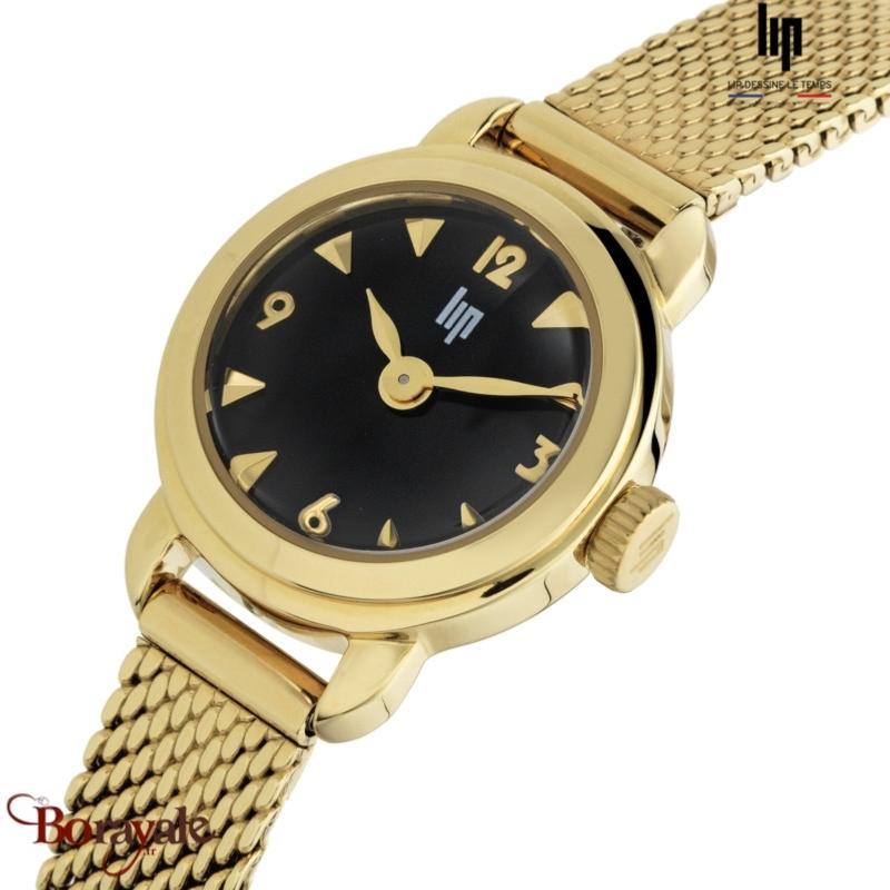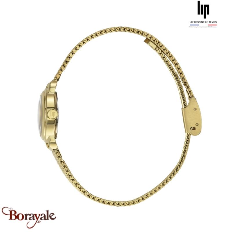 Fermeture du bracelet : Bracelet: acier en mailles milanaises dorées - 8 mm, Toutes les montres LIP sont fabriquées en acier inoxydable 316L, l’un des aciers les plus nobles et les plus chers du monde. L’acier 316L est hypoallergénique, amagnétique, très résistant à la corrosion et quasiment indéformable. L’utilisation de ce matériau haut de gamme nous garantit la grande fiabilité des boîtiers et bracelets métalliques.