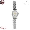 La montre est équipée d’un bracelet interchangeable de 8 mm, fin et délicat, parfaitement accordé à la teinte dorée du boîtier. Elle fonctionne grâce à un mouvement quartz à pile, est étanche jusqu’à 30 mètres et protégée par un verre minéral.