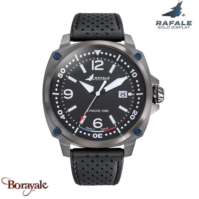 Montre RAFALE Solo Display PILOTE Quartz 666035 Homme française 44,5 mm, acier 4 vis bleus au cadran noir