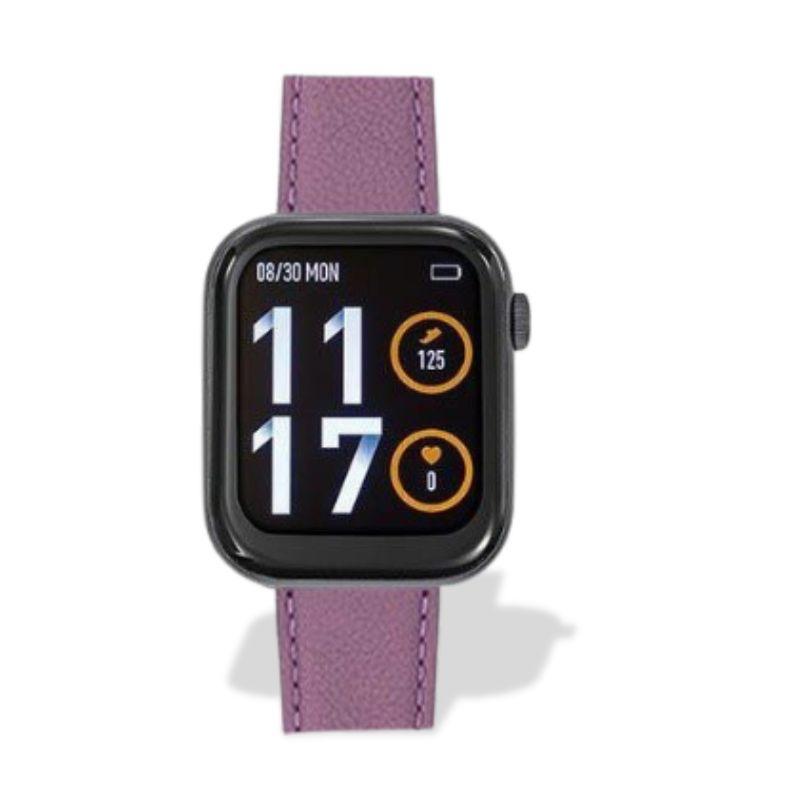 Montre TEKDAY pavé connectée unisexe boîtier noir, pomme mauve surpiqué 656555