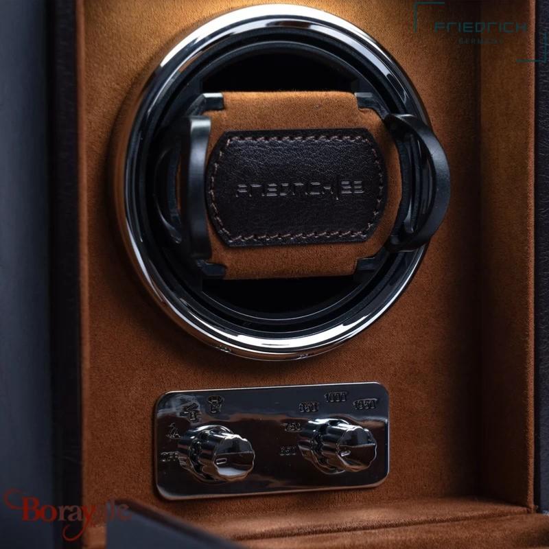 Le remontoir abrite deux montres automatiques et dispose de différents modes de rotation et de fonctionnement pour répondre aux différentes exigences des montres automatiques d'aujourd'hui. Les commutateurs de ce segment permettent de sélectionner l'un des différents programmes de mouvement.