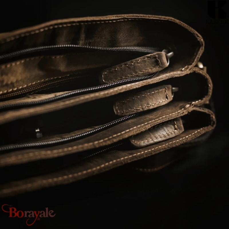 Besace Gibecière KASZER Nevada en cuir de vachette pleine fleur touché velours Marron naturel touché velours