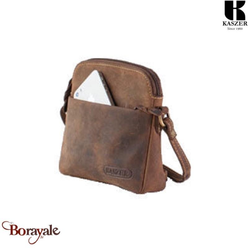 Sac bandoulière KASZER collection Wyoming brun naturel moyen 20622-C6