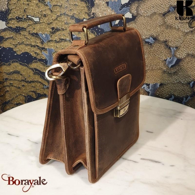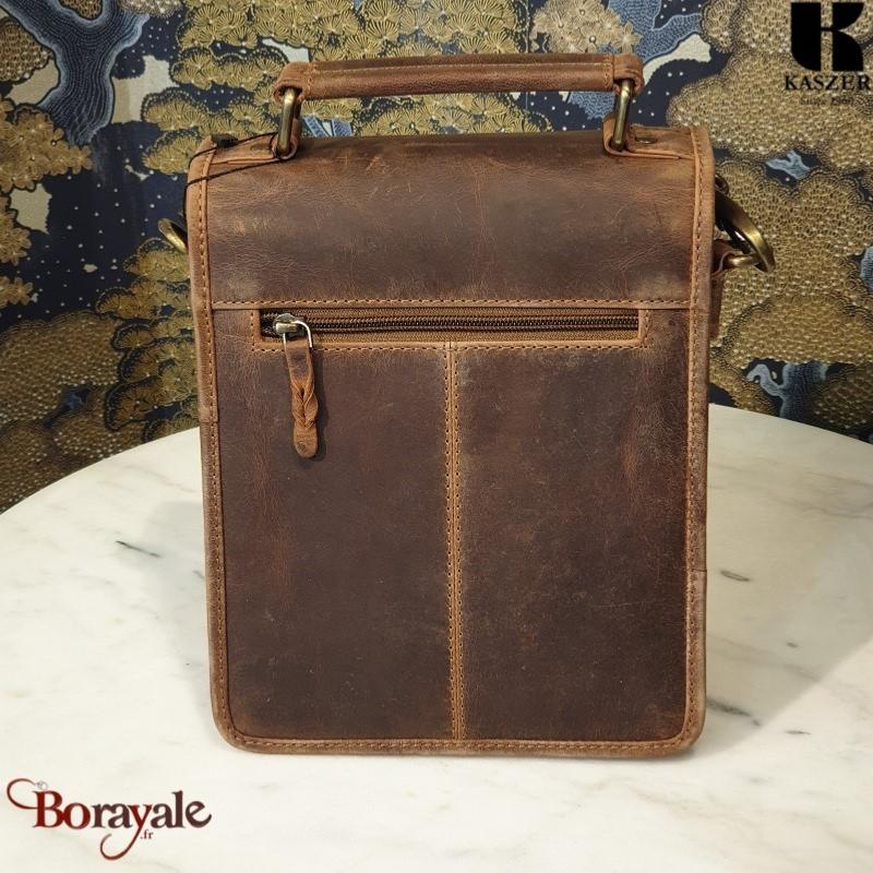 Sacoche KASZER Nevada en cuir de vachette pleine fleur touché velours Marron naturel clair touché velours